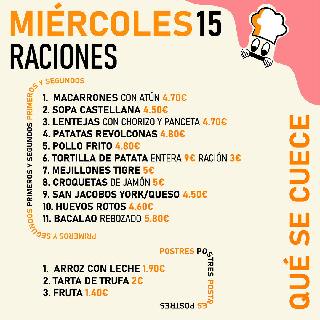 Nuestra comida es elaborada a diario por un chef profesional con más de 30 años de experiencia en la cocina